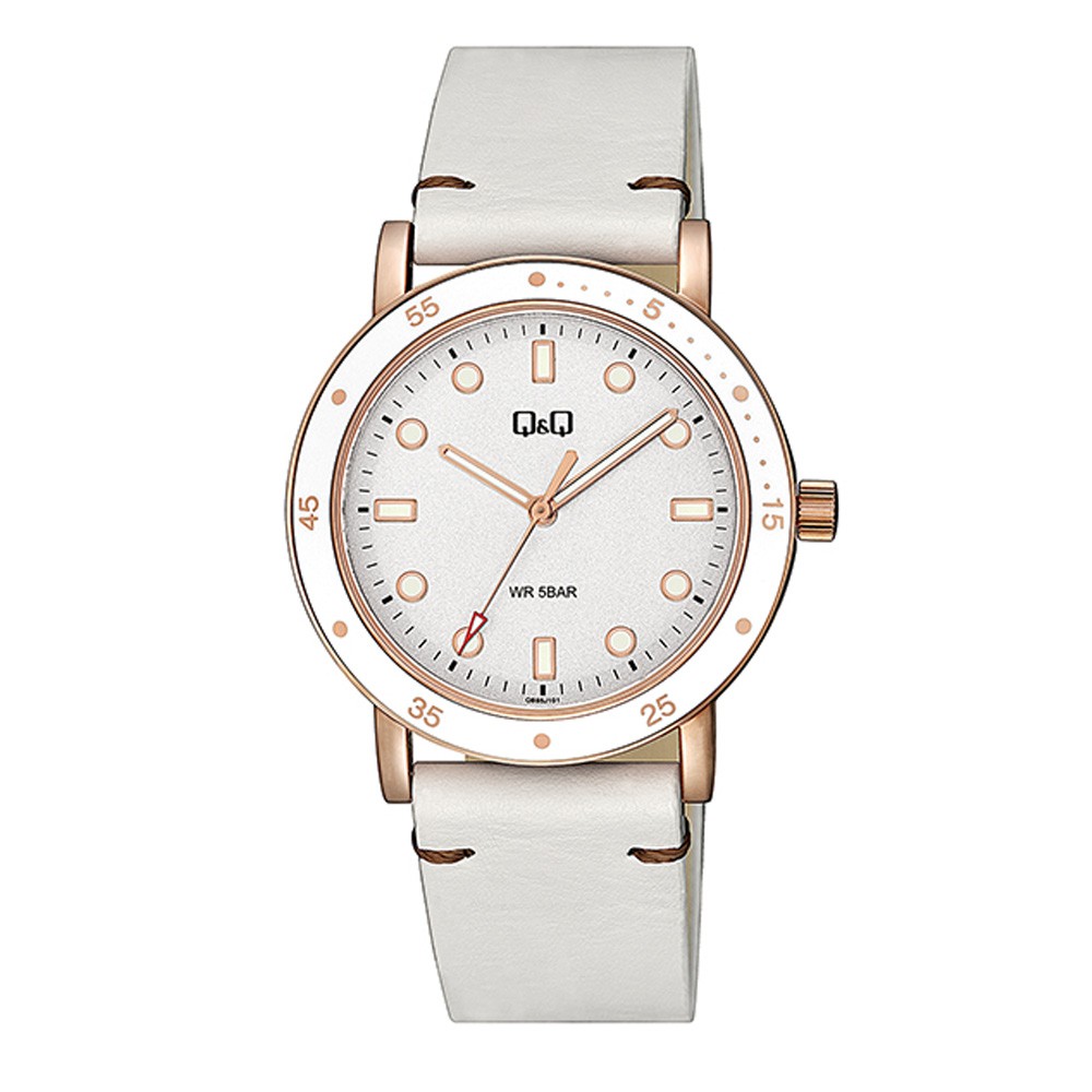 Q&Q női karóra, quartz, rózsaarany színű tok, fehér szíj, fehér számlap, QB85J101Y