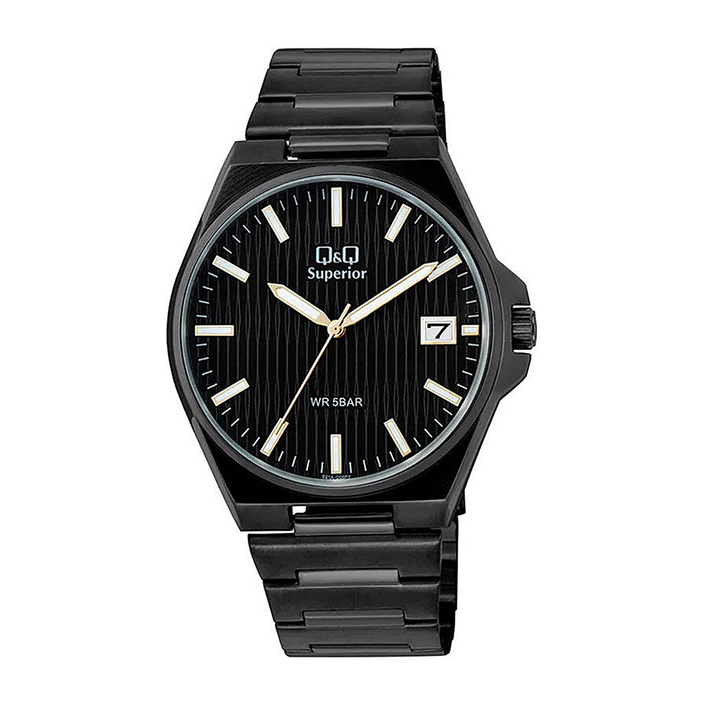 Q&Q férfi karóra, fekete színű nemesacél tok, fekete színű nemesacél csat, fekete számlap, (Superior), S21A-008PY