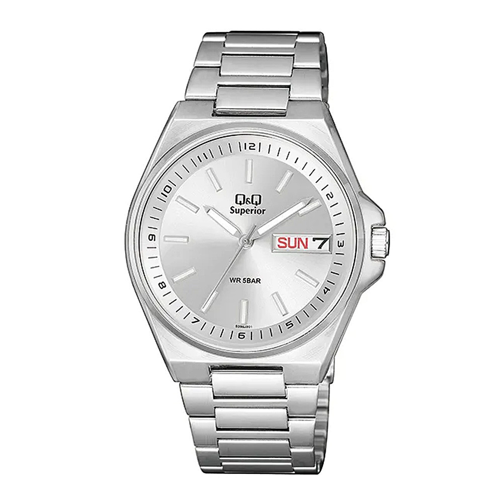 Q&Q férfi karóra, quartz, ezüst színű nemesacél tok, ezüst színű nemesacél csat, ezüst színű számlap, (Superior), S396J201Y