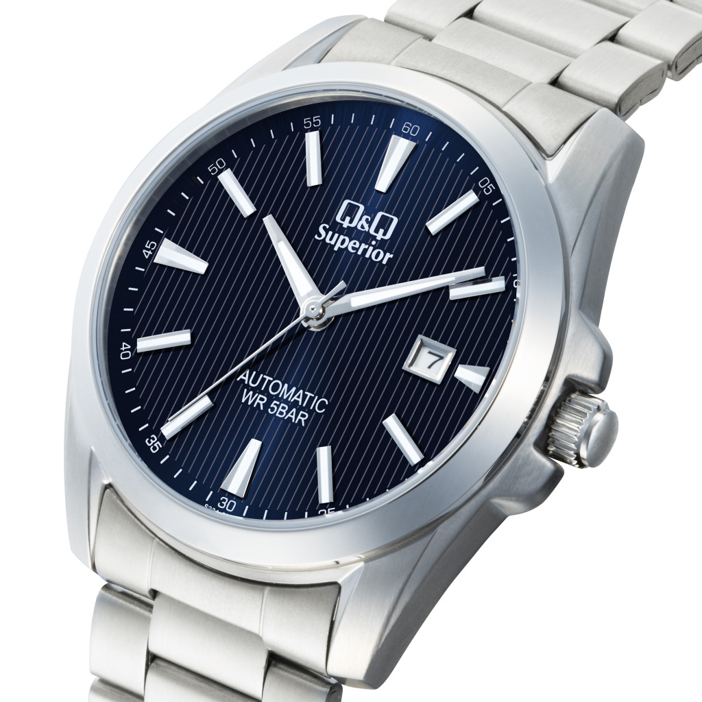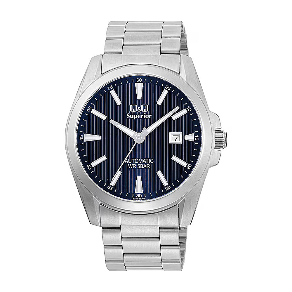 Q&Q férfi AUTOMATA karóra, ezüst színű nemesacél tok, ezüst színű nemesacél csat, kék számlap, (Superior), S23A-503VY