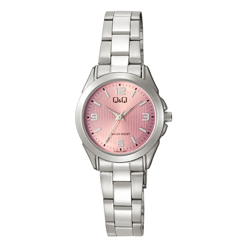 Q&Q női karóra, ezüst színű fémtok, rózsaszín színű számlap, ezüst színű fémcsat C05A-015PY