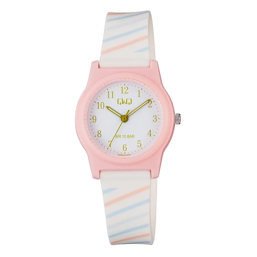 Q&Q karóra, quartz, rózsaszín színű műanyag tok, fehér színű számlap, fehér műanyag szíj, G23A-014VY