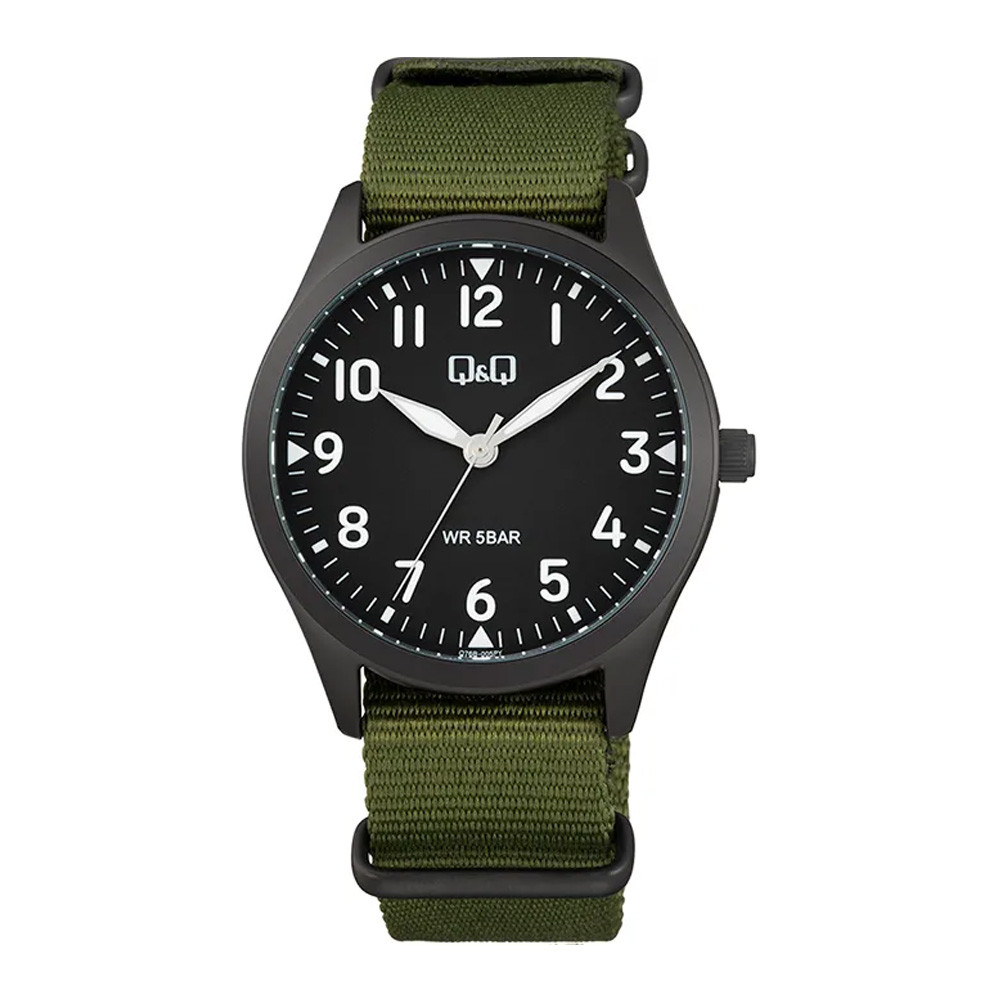 Q&Q férfii karóra,fekete színű fémtok, fekete színű számlap, zöld színű NATO szíj Q76B-005PY