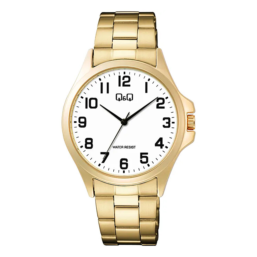 Q&Q férfi karóra, quartz, arany színű tok, arany színű fém csat, fehér számlap C36A-016PY
