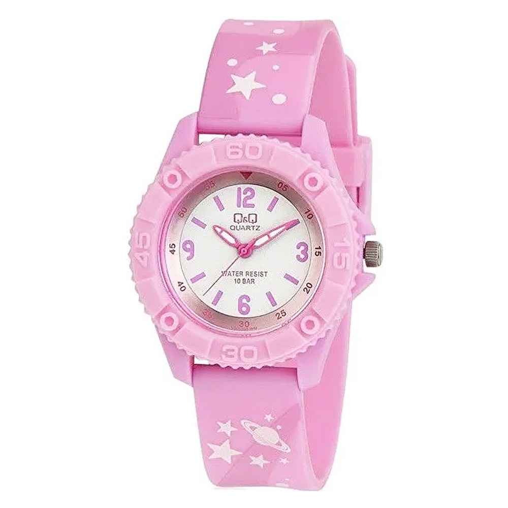 Q&Q gyerek karóra, quartz, rózsaszínű tok, vegyes színű szíj, fehér számlap, VQ96J020Y