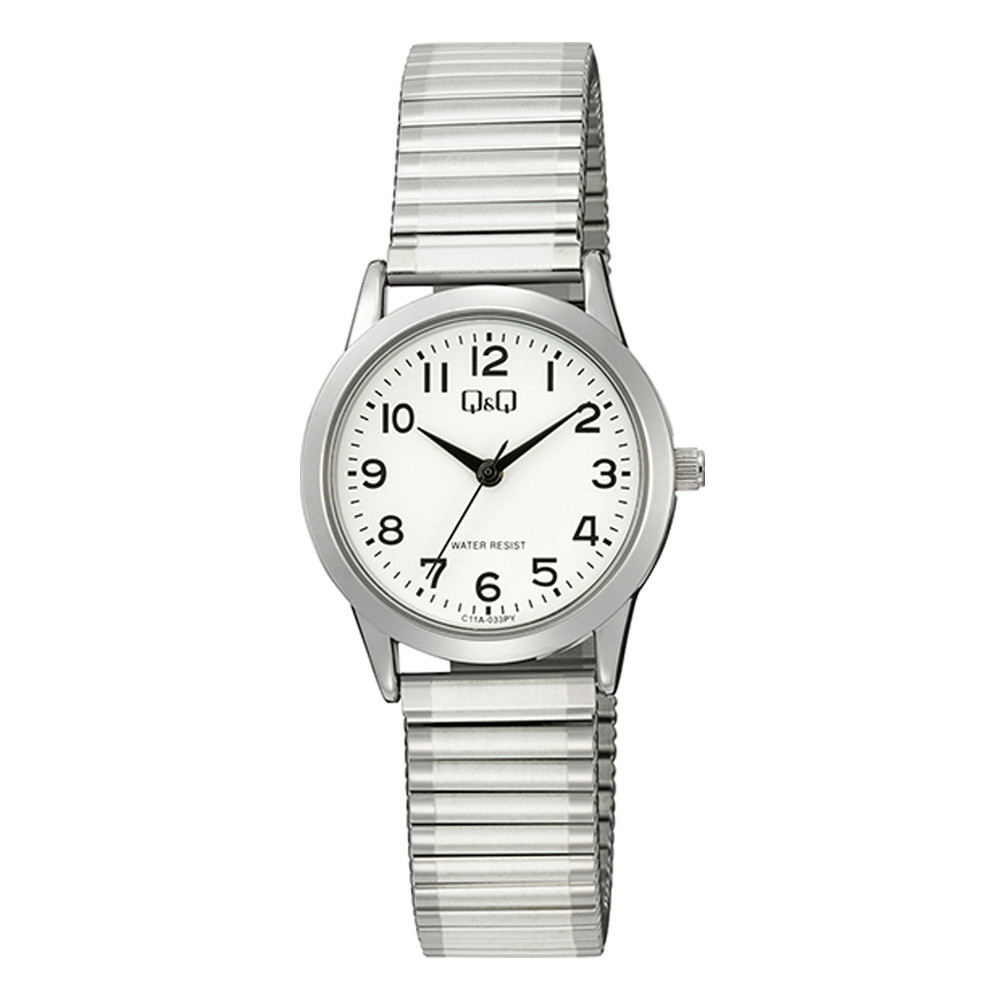 Q&Q női karóra, ezüst színű fémtok, ezüst színű fémcsat, fehér számlap, C11A-033PY