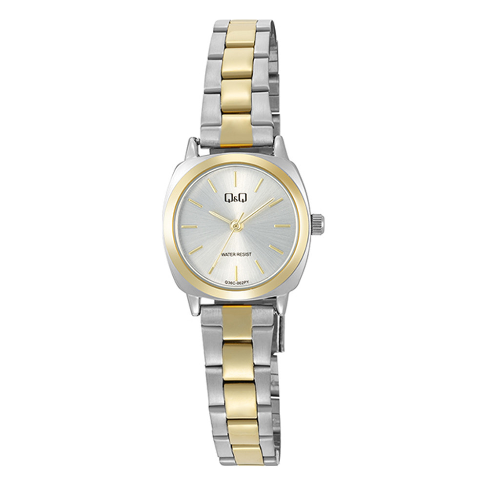 Q&Q női karóra, bicolor színű fémtok, bicolor színű fémcsat, ezüst színű számlap, Q36C-002PY
