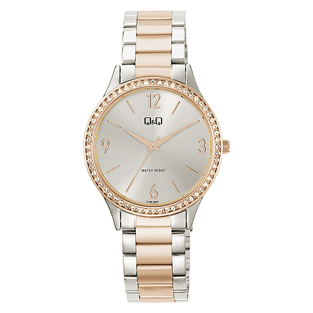 Q&Q női karóra,quartz, bicolor színű fémtok, bicolor színű fémcsat, ezüst számlap Q75B-005PY