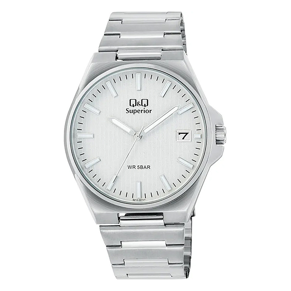Q&Q férfi karóra, quartz, ezüst színű nemesacél tok, ezüst színű nemesacél csat, ezüst számlap, (Superior), S21A-001VY