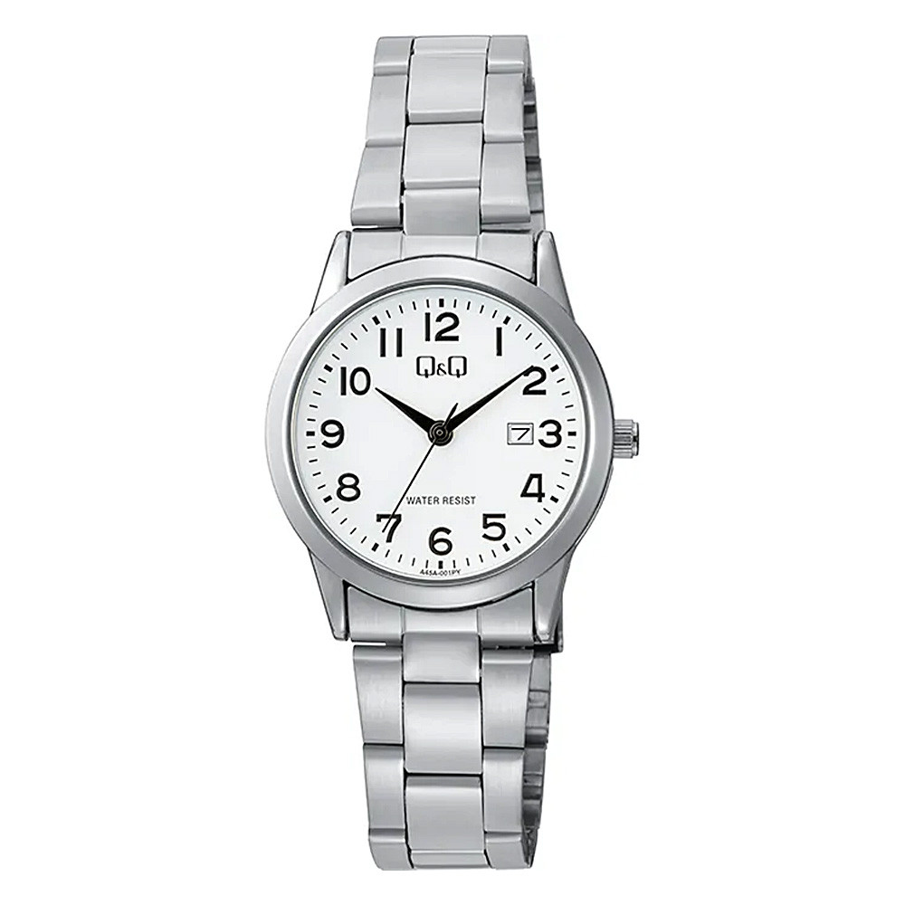 Q&Q női karóra, quartz, ezüst színű fémtok, ezüst színű fémcsat, fehér színű számlap, A45A-001PY