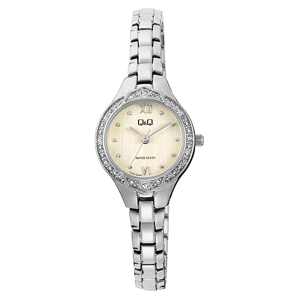 Q&Q női ékszeróra,quartz,ezüst színű fémtok, ezüst színű fémcsat, pezsgő színű számlap, F14A-004PY