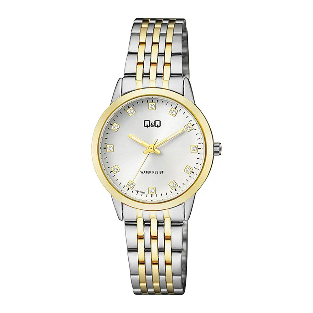 Q&Q nöi karóra, quartz, bicolor színű fémtok, bicolor színű fémcsat, ezüst színű számlap QZ81J401Y