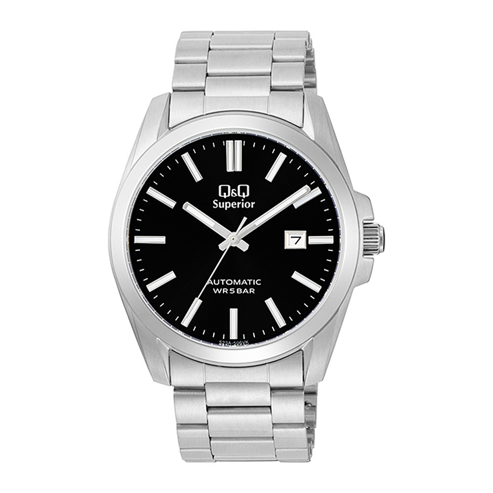 Q&Q férfi automata karóra, ezüst színű nemesacél tok, ezüst színű nemesacél szíj, fekete színű számlap (Superior) 23A-506VK
