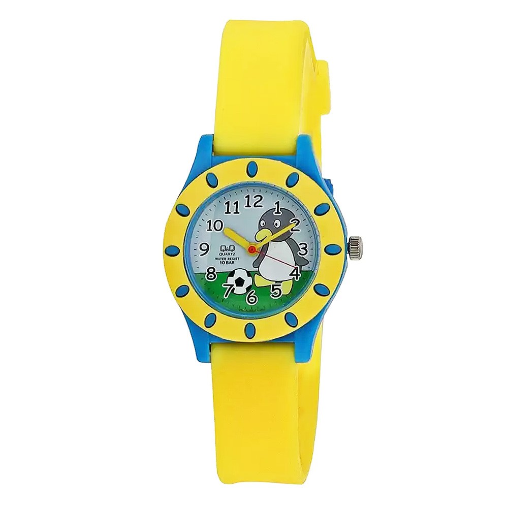 Q&Q gyerek karóra, quartz, figurás számlap, sárga szíj, vegyes színű tok, VQ13-004