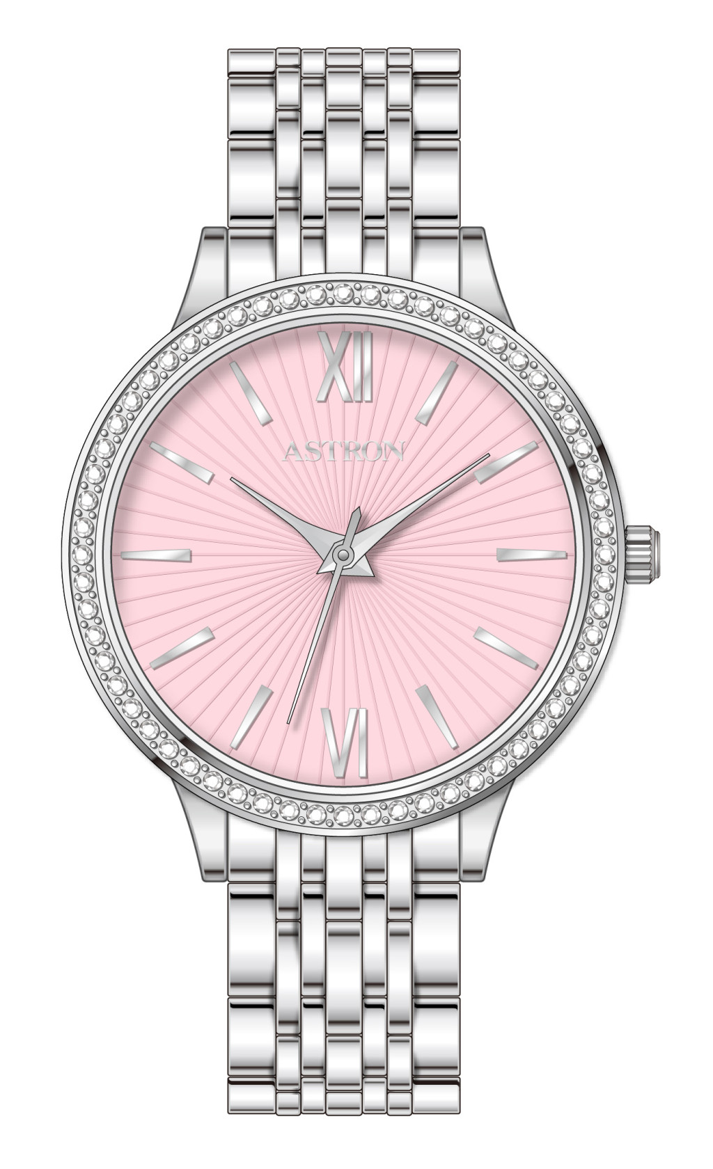 ASTRON 8064-6 női karóra, ékszeróra, ezüst színű nemesacél tok, ezüst színű nemesacél csat, rózsaszín számlap, keményített ásványüveg, quartz szerkezet, WR 50M vízállóság