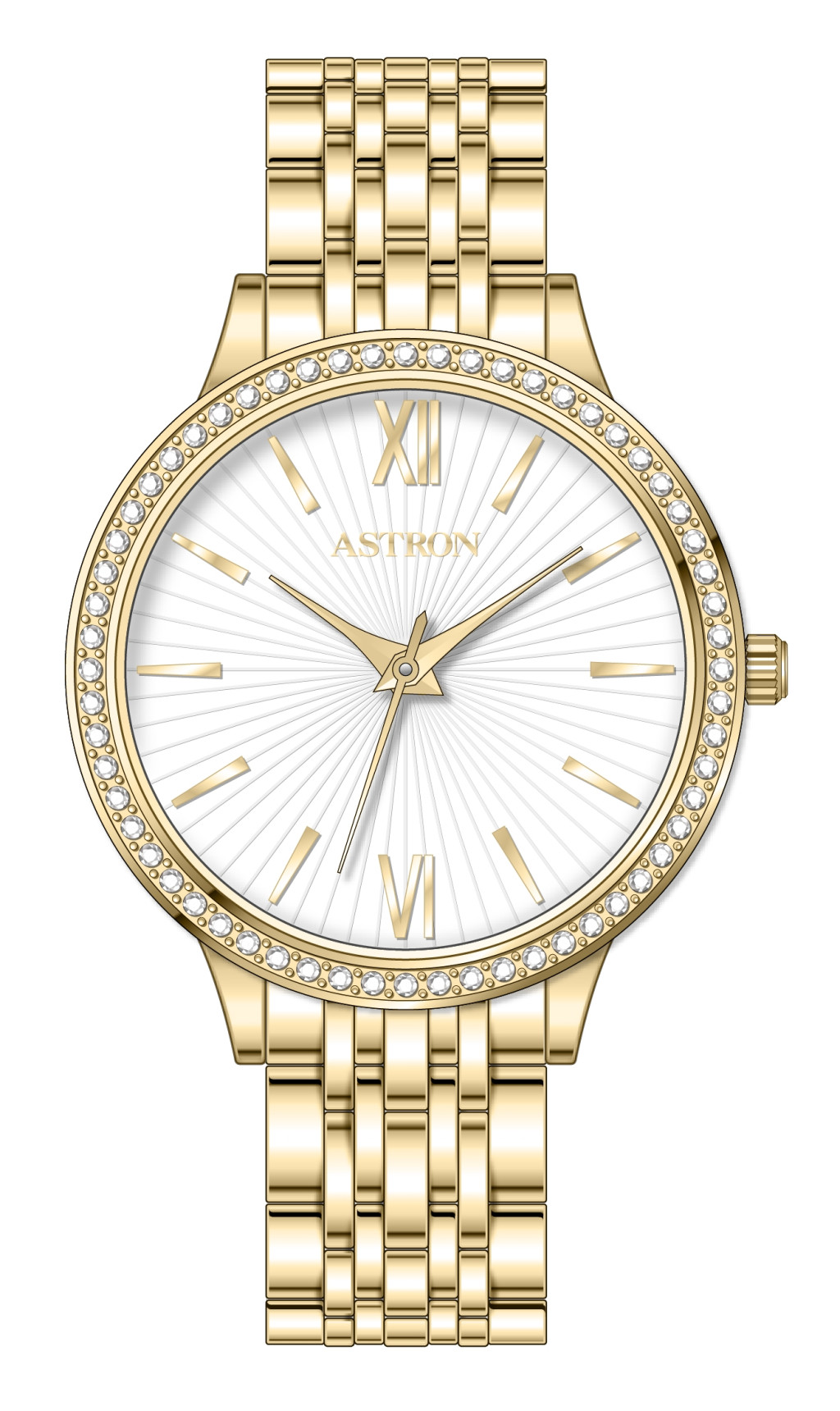ASTRON 8064-9 női karóra, ékszeróra, arany színű nemesacél tok, arany színű nemesacél csat, fehér számlap, keményített ásványüveg, quartz szerkezet, WR 50M vízállóság