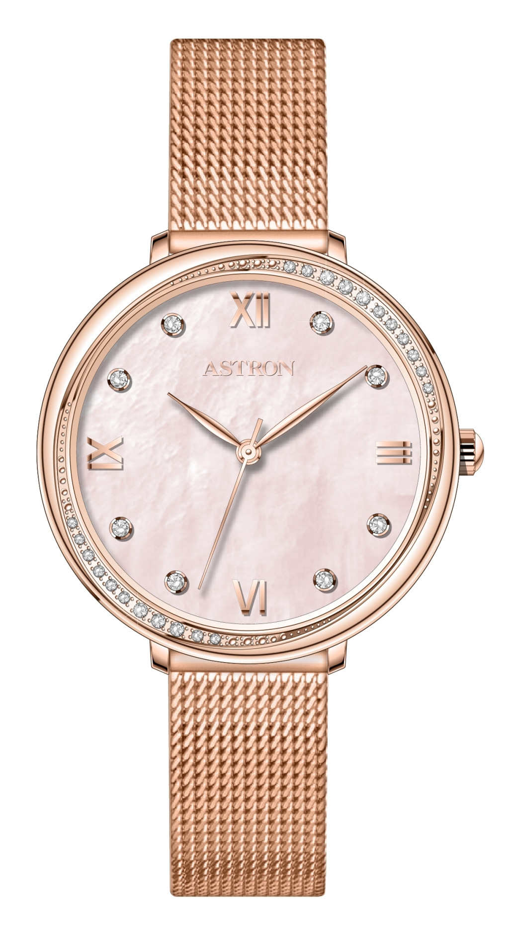 ASTRON 8065-0 női karóra, rózsa arany színű nemesacél tok, rózsa arany színű milánói csat, rózsa arany számlap, keményített ásványüveg, quartz szerkezet, WR 50M vízállóság