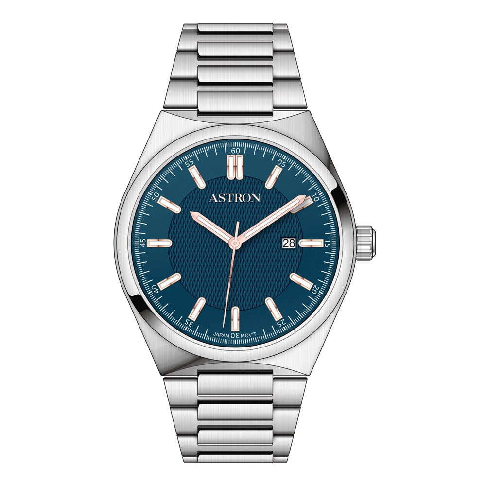 ASTRON 8067-2 quartz férfi karóra, ezüst színű nemesacél tok, ezüst színű nemesacél csat, kék számlap, WR50M vízállóság