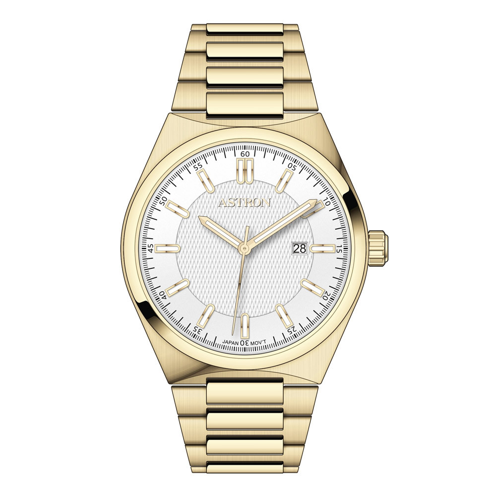 ASTRON 8067-9 quartz férfi karóra, arany színű nemesacél tok, arany színű nemesacél csat, fehér számlap, WR50M vízállóság