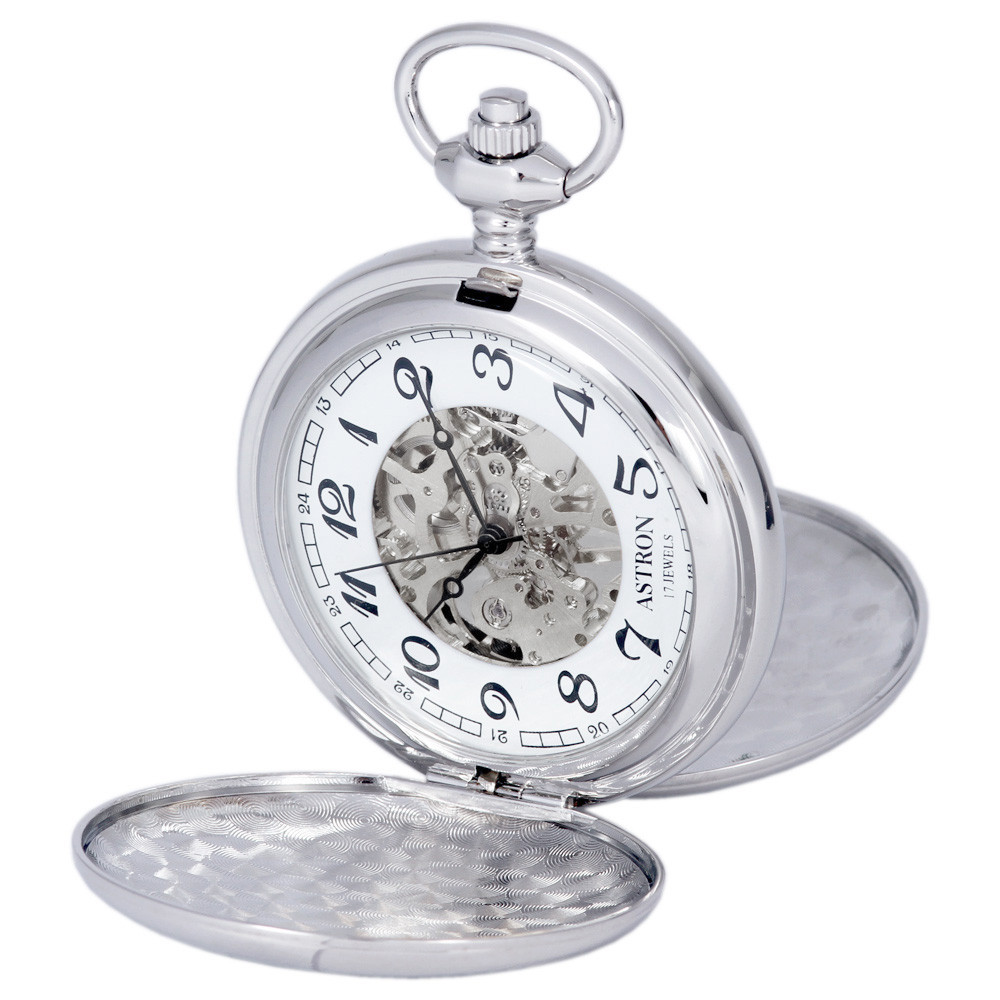 Astron férfi zsebóra, mechanikus (skeleton), ezüst színű tok, arab számos számlap